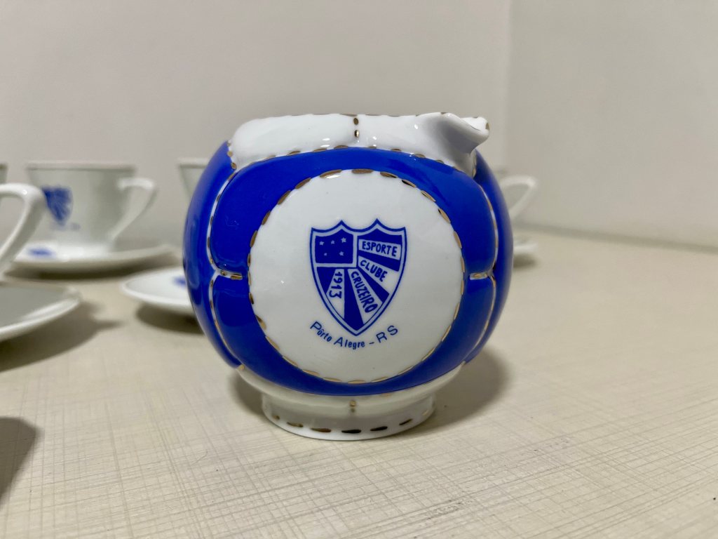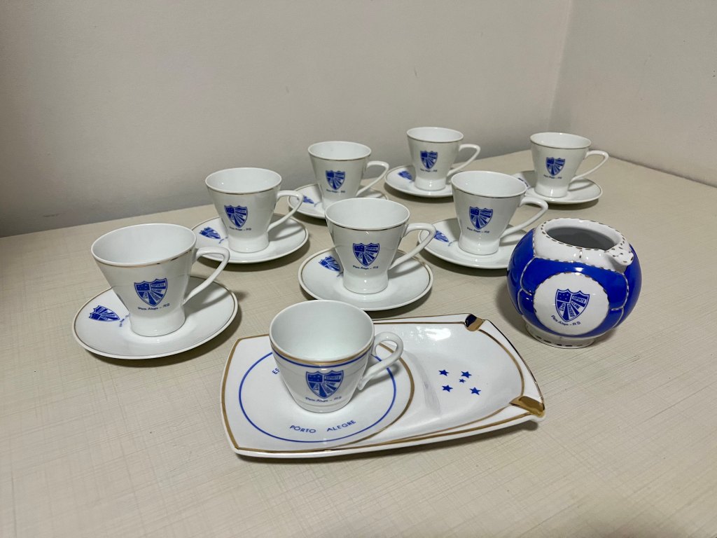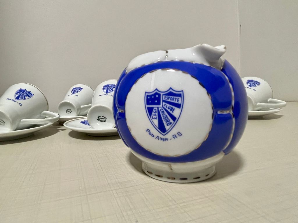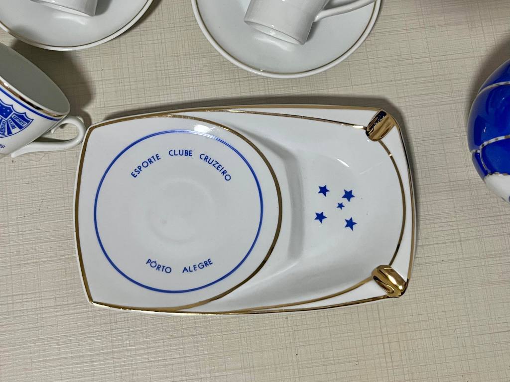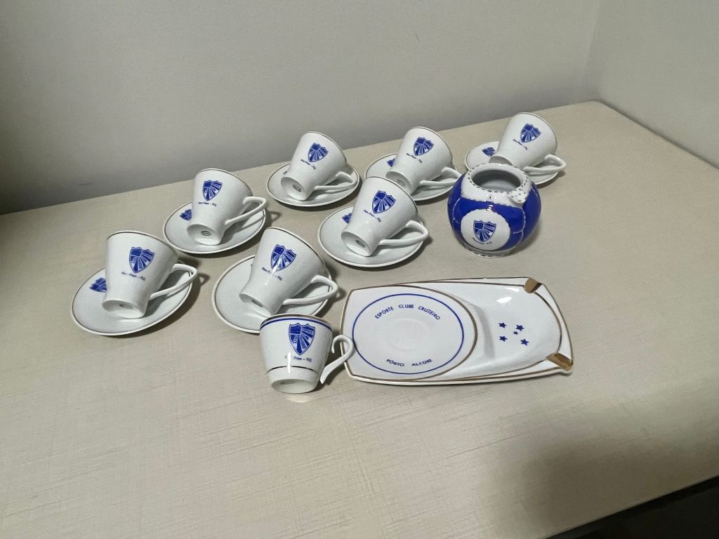 Essas peças não eram simples utensílios. Eram símbolos. Cada escudo impresso na porcelana era uma afirmação silenciosa de pertencimento. O torcedor que bebia seu café ali não estava apenas degustando uma bebida: participava de um ritual coletivo que unia a vida social e a paixão esportiva. O Cruzeiro daquele tempo era mais que um clube; era uma casa, um círculo de amizades, um pedaço da cidade. Hoje, ao olhar para esse conjunto, vemos mais do que objetos antigos. Vemos a memória viva de um clube que respirava futebol e sociabilidade, que cultivava o orgulho de seus símbolos e que entendia que a identidade se constrói também nos detalhes — no traço azul do escudo, na borda dourada da porcelana, na forma arredondada de um cinzeiro-bola. É um retrato de uma época em que o Cruzeiro tinha o campo e o salão, o grito e a conversa, a paixão e a elegância.