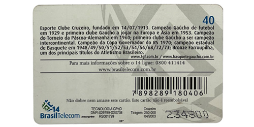 Cartão telefônico da Brasil Telecom em homenagem aos 90 anos do Cruzeiro, comemorados em 14 de julho de 2003.